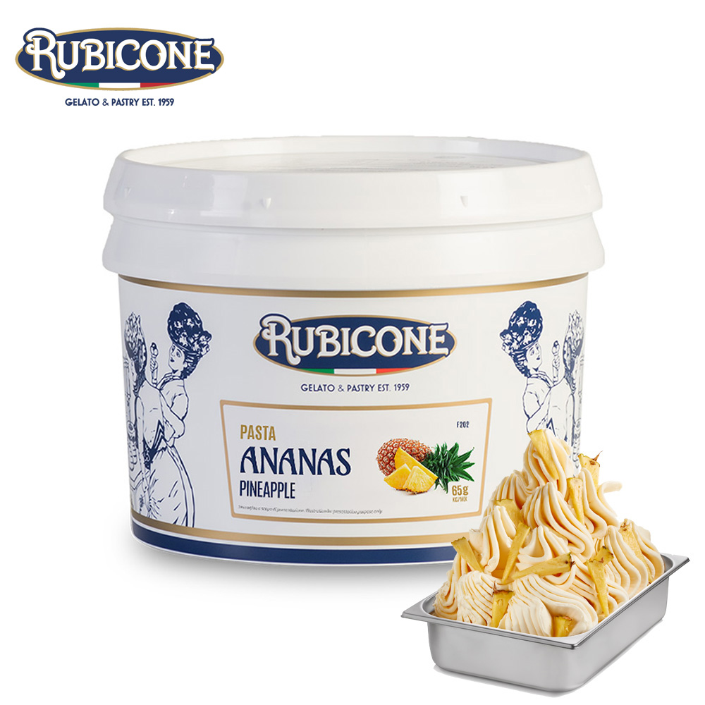 Thành lập từ 1959, sản phẩm của Rubicone hiện được phân phối gần 200 quốc gia trên thế giới. Rubicone luôn chú trọng nghiên cứu, cải tiến chất lượng, phong vị truyền thống, nhà làm (home-made). Sản phẩm của Rubcicone dễ sử dụng, ổn định và cho chất lượng kem như ý… Với Rubicone, người làm kem, làm đồ nước có thể làm kem chuẩn Ý, làm đồ nước kiểu Tây đúng kiểu Italy dễ dàng, mà không cần phải tốn nhiều công sức, bí quyết. Người làm kem chuẩn Ý mà không cần phải là một đầu bếp chuyên nghiệp như ở Italy cũng cho ra những sản phẩm phẩm đầy chất nghệ thuật và ưu việt.